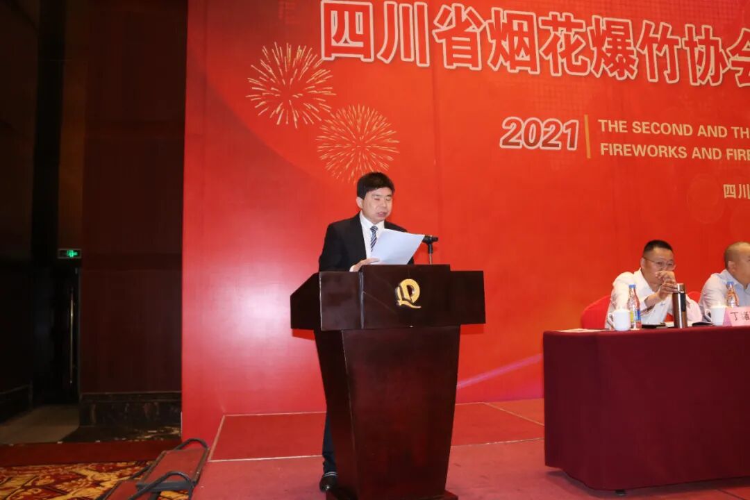 省安全监察执法总队总队长柴治强、省应急管理厅危险化学品安全监管处副处级监察专员王泉、省公安厅治安总队枪爆支队支队长蔡新宽、省市场监管局产品质量安全监督处副处长斯建斌、省烟花爆竹安全监督质量检测站常务副站长李德钊应邀出席会议并讲话。南充市、自贡市、巴中市应急管理局领导和相关科室负责人以及湖南省浏阳市、醴陵市政府相关职能部门、协会、商会等有关领导应邀列席会议。大会由会长李勇主持。