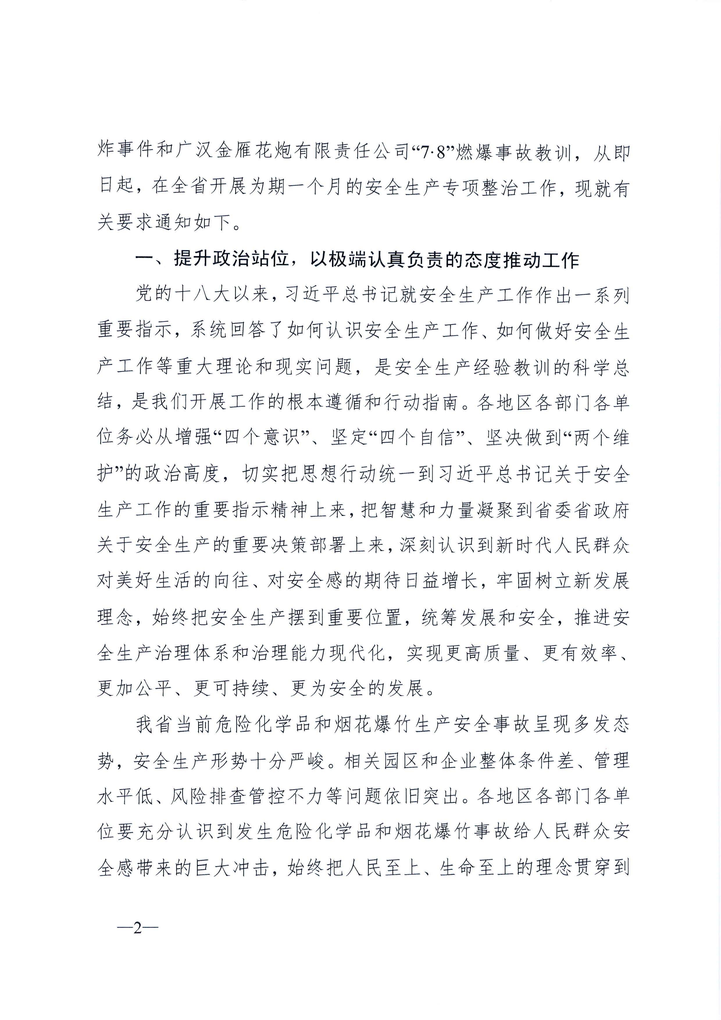 四川省安全生产委员会办公室《关于开展危险化学品和烟花爆竹安全生产专项整治工作的紧急通知》